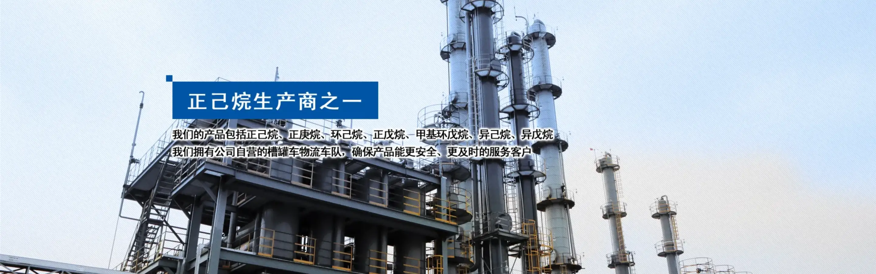 我们以极具竞争力的资源优势、与大庆石化、锦州石化、辽阳石化、盘锦石化及吉林石化建立的长期共赢的原材料关系、确保生产出高品质的化学品。我们的产品包括正己烷、正庚烷、环己烷、正戊烷、甲基环戊烷、异己烷、异戊烷。我们拥有公司自营的槽罐车物流车队,确保产品能更安全、更及时的服务客户。