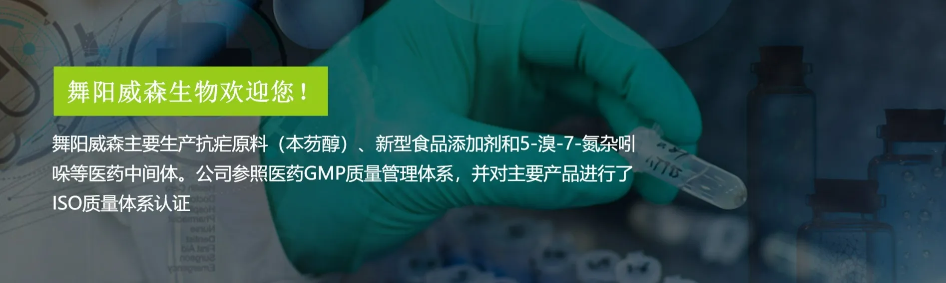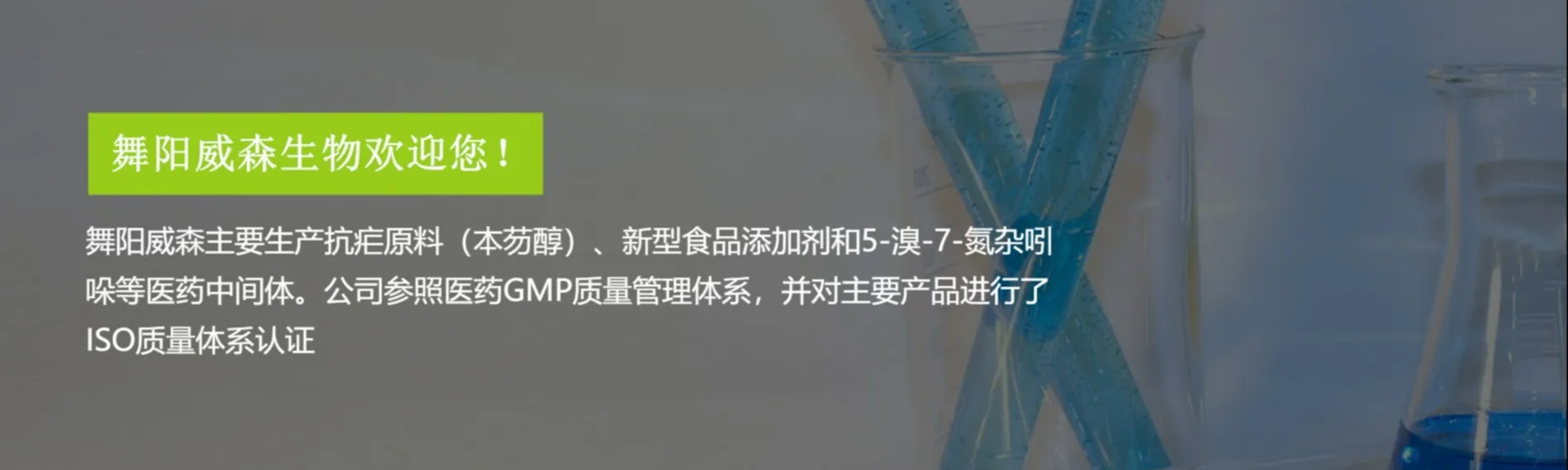 舞阳威森位于河南省舞阳县盐化工产业园(省级化工园),主要生产抗疟原料(本芴醇)、新型食品添加剂和5-溴-7-氮杂吲哚等医药中间体。公司参照医药GMP质量管理体系,并对主要产品进行了ISO质量体系认证。
