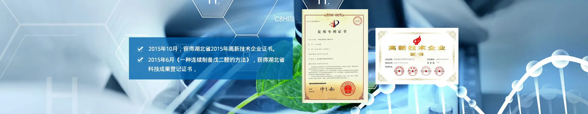 湖北微控生物科技有限公司主要从事戊二醛系列杀菌剂精细化工产品的研发、生产和经营,于2011年3月注册成立,位于黄冈市黄州区火车站经济开发区,占地面积40亩。建成戊二醛连续生产装置。年产量10000吨,2018年实现年销售收入1.5亿元,出口1200多万美金。公司拥有一支具有行业领先水平的资深研发和经营管理团队,是湖北省高新技术企业,拥有自主研发的核心技术和多项发明专利及成果证书,经省科技厅批准成为2015年湖北省中小企业技术创新计划项目,2016年在武汉股权托管交易中心成功挂牌科技版。成为黄冈市黄州区火车站经济开发区化工园首批获得黄冈市环保局颁发的项目竣工环评验收批复和《排污许可证》的企业,实现工艺废水零排放。获得黄冈市安全生产监督管理局颁发的《安全生产标准化三级企业》证书和湖北省安全生产监督管理局颁发的《安全生产许可证》的厂家,并顺利通过了ISO 9001质量管理体系认证。产品工艺先进,产品质量达到国际先进水平并通过美国EPA论证和欧盟REACH论证。2017年与陕西科技大学合作研发的《环保型皮革脂肪醛鞣剂产业化与应用》被黄冈市科技局专家评为一般研究与开发项目和创新团队。2018年,湖北省知识产权局确定我公司为《湖北省第三批知识产权示范建设单位》。我公司主要产品有:50%工业戊二醛;50%医用戊二醛;改性戊二醛;脂肪醛(PN、PF);吡喃(MDP); 复配杀菌剂等。主要用作:油田杀菌剂、工业循环水处理剂、造纸水处理剂、皮革鞣剂、医用消毒剂、日用消毒剂、养殖消毒剂等。广泛应用于生物医学工程、细胞免疫学、生物化学、皮革化学、组织化学及食品、微生物工业、医疗卫生、环境保护以及有机合成等领域,利用前景广阔。